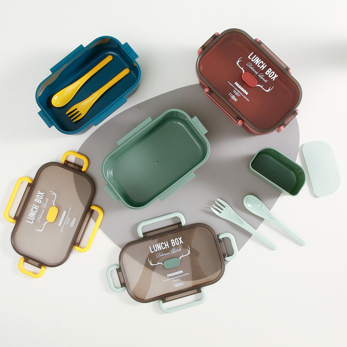 長方雙層/單層密封飯盒+圓形/八角隨行杯