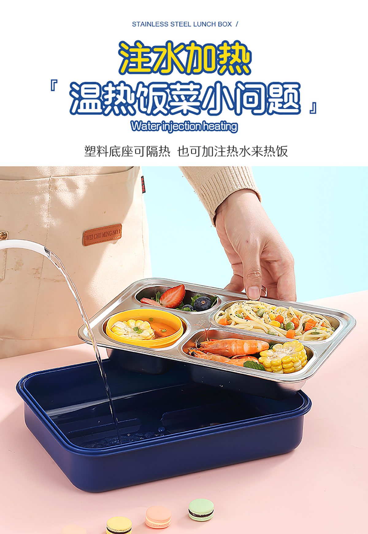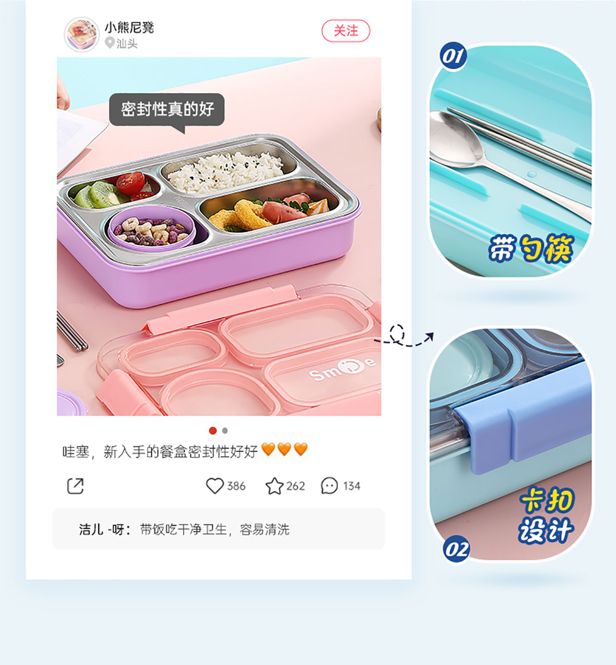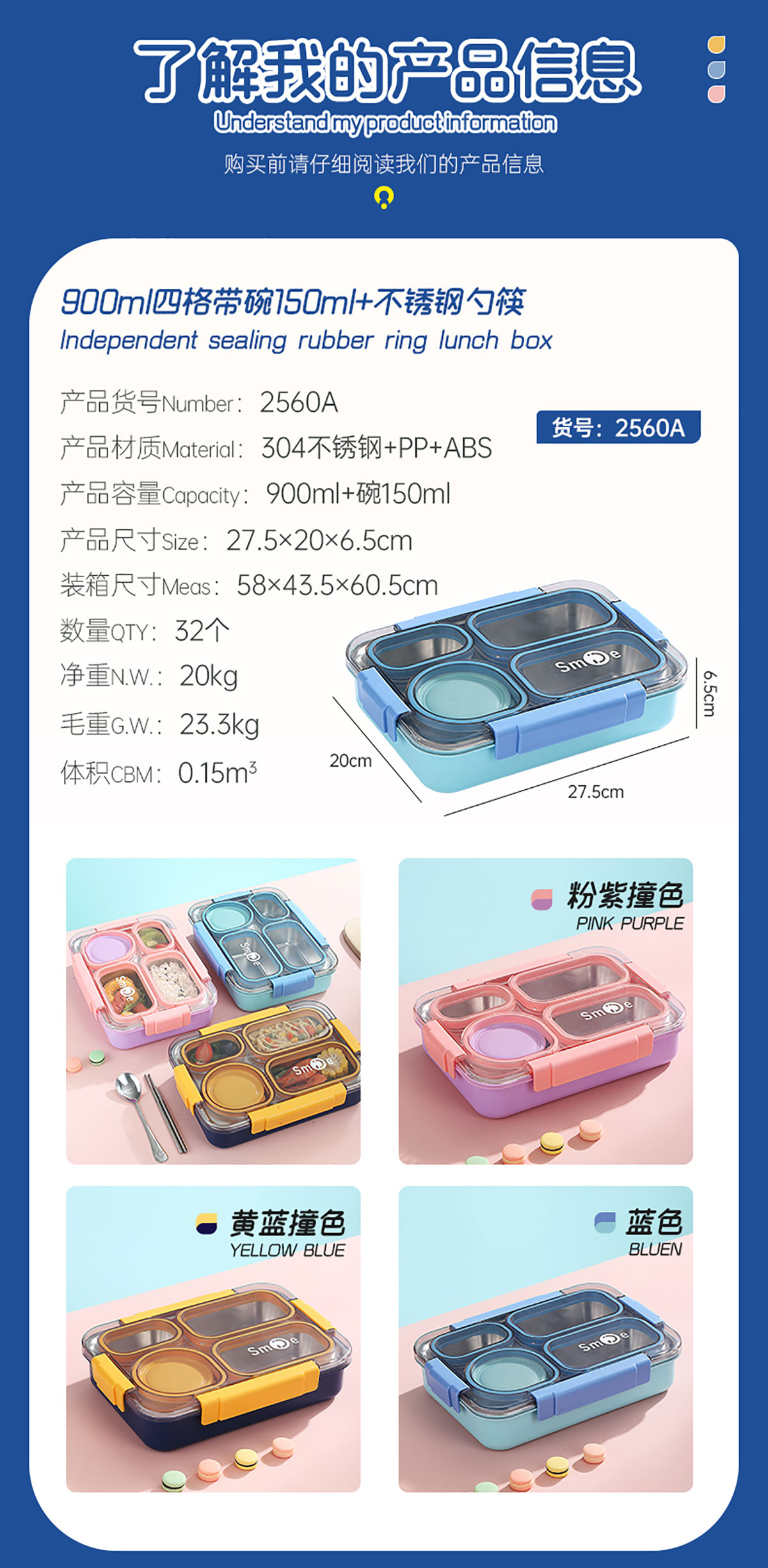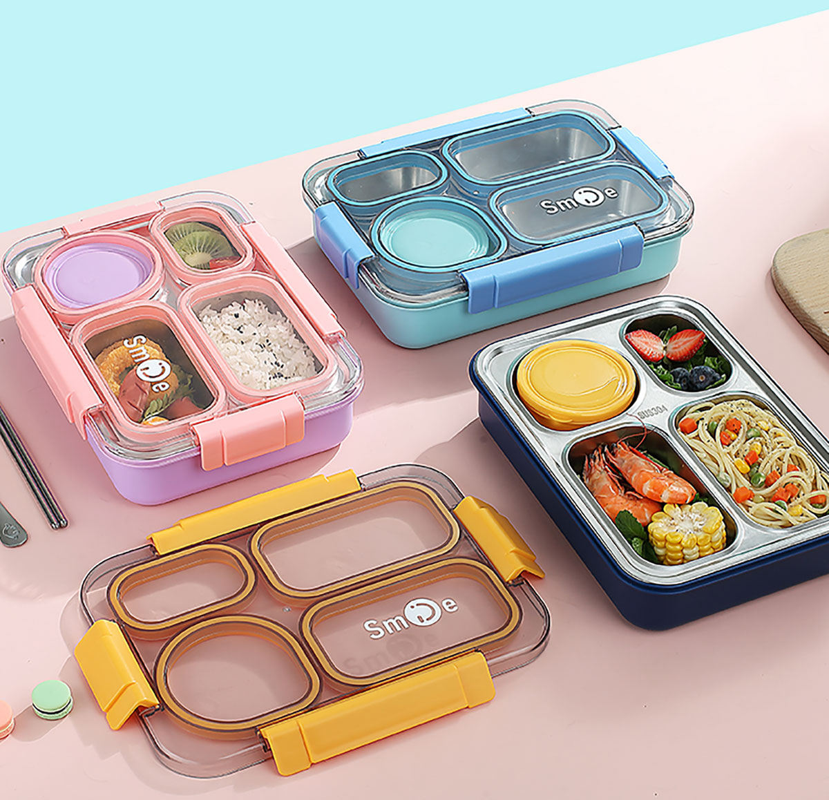 900ml獨(dú)立密封不銹鋼餐盒(4格+PP碗150ml+不銹鋼勺筷)