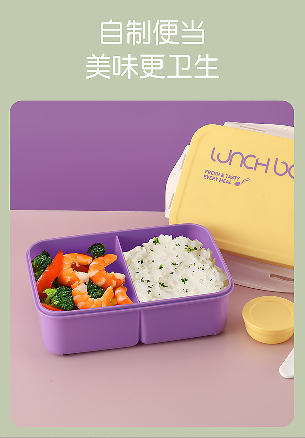 Size: 飯盒:210*150*83mm/1000ml 醬料盒:58*25mm/35ml 叉子:38*42mm