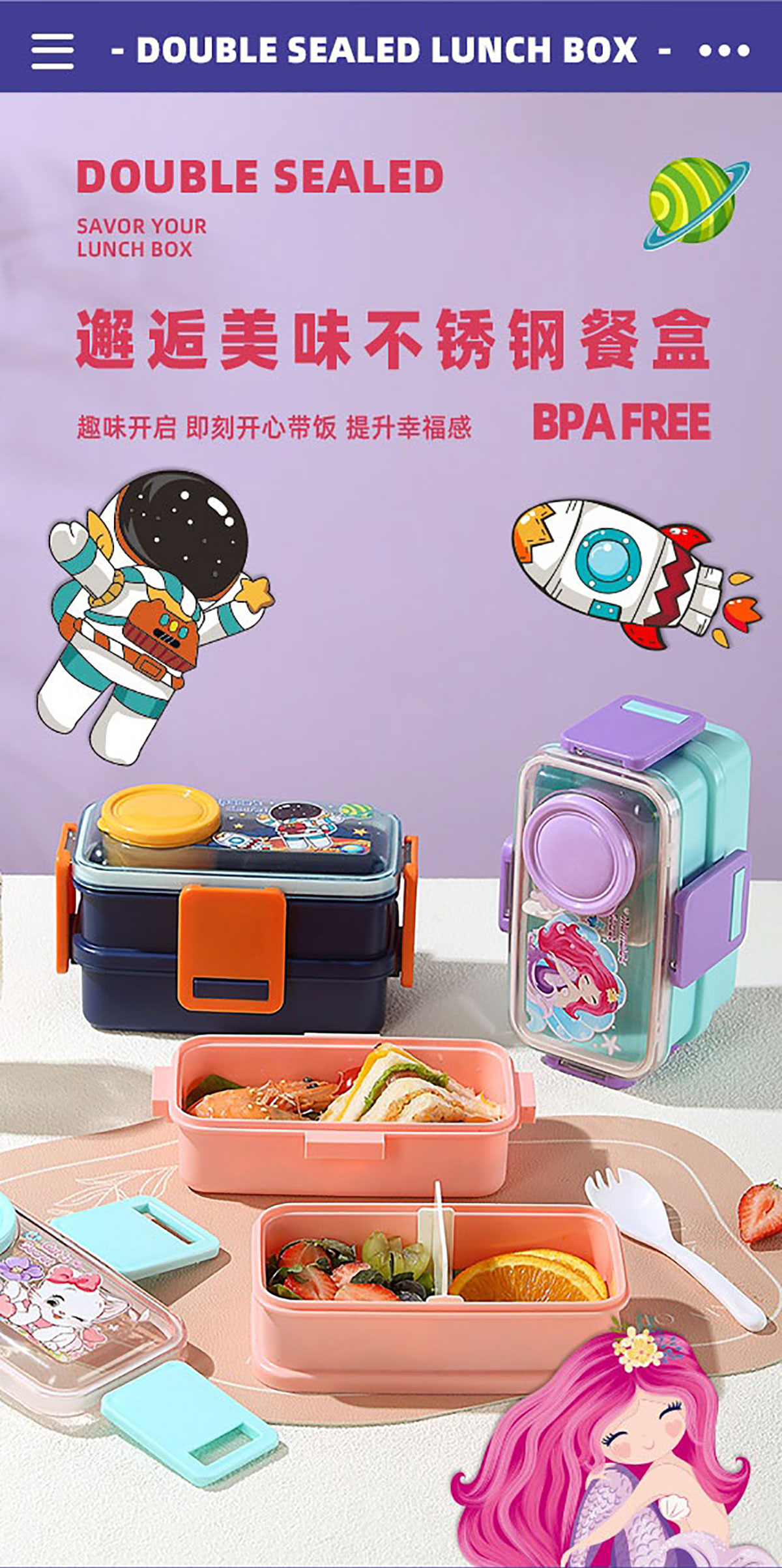 彩光卡通雙層餐盒(500mlx2+外置醬料杯80ml)