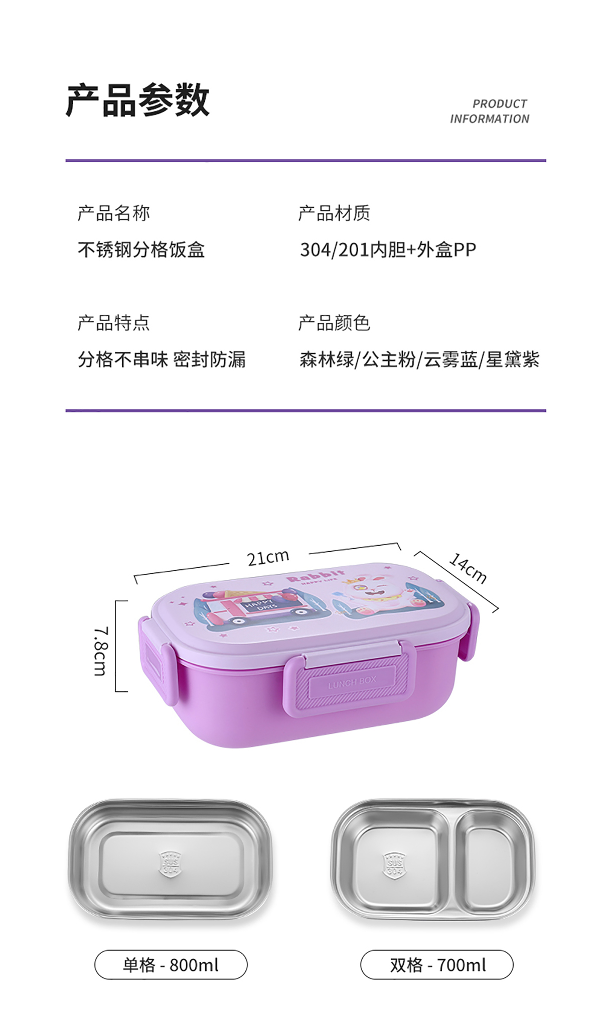 卡通飯盒(201/304單格/雙格內(nèi)膽)