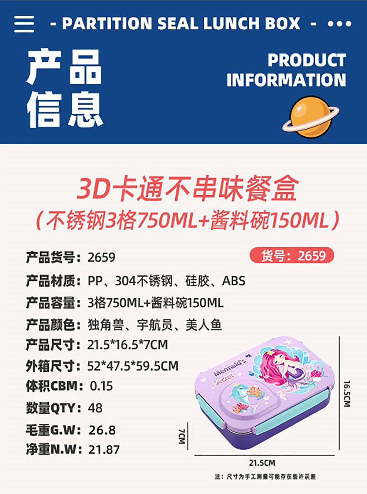 Size: AQX-2659:215*165*70mm+塑料碗150ml