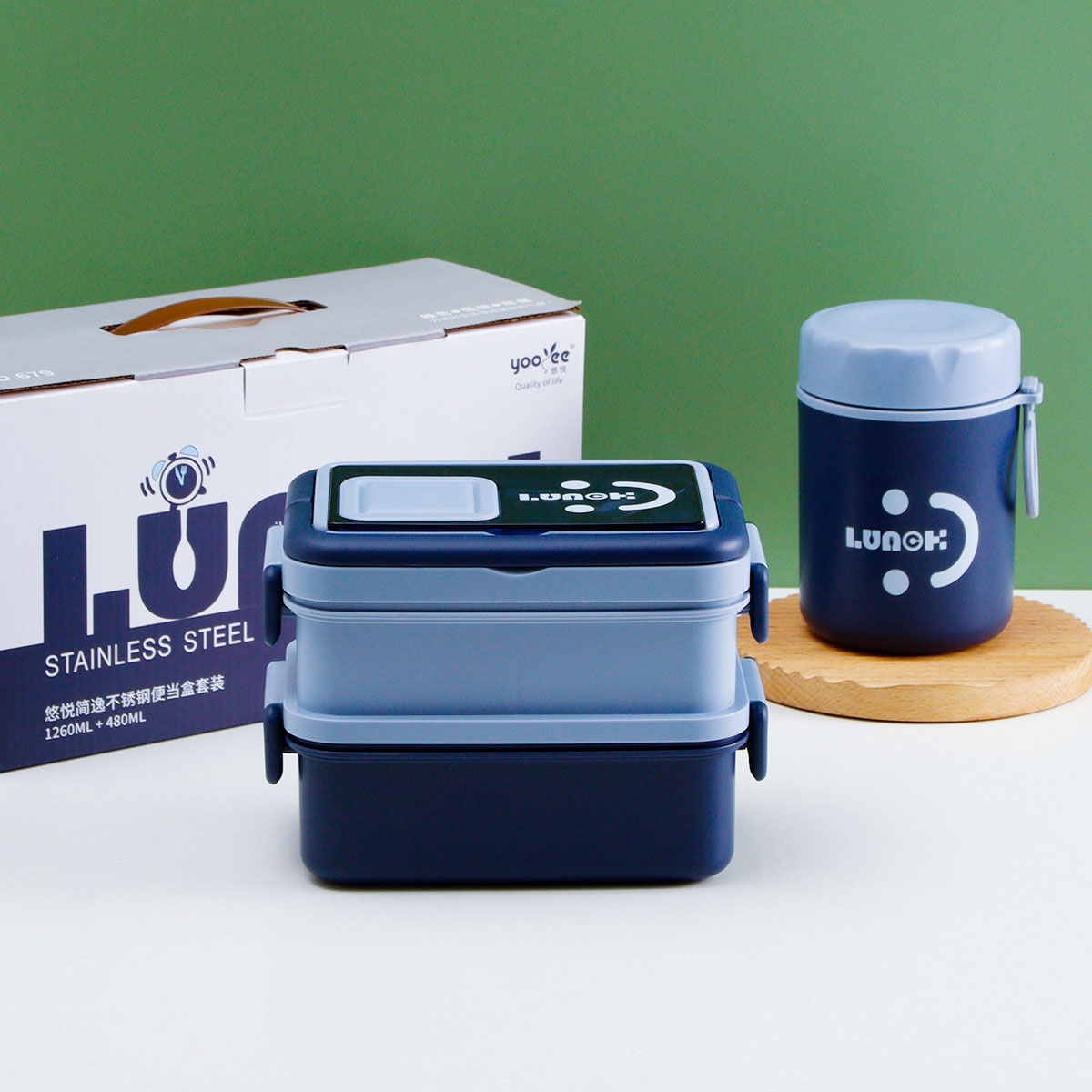 悠悅簡(jiǎn)逸不銹鋼便當(dāng)盒套裝(1260ml+480ml)