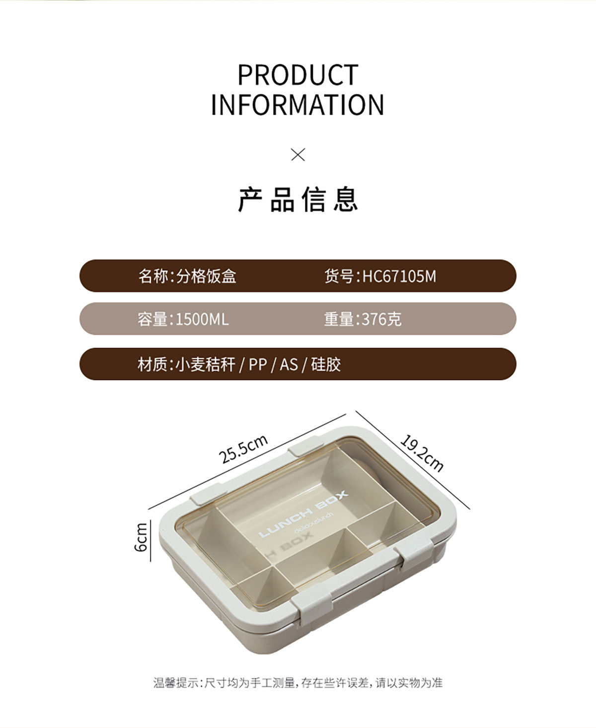 Size: 255*192*60mm/1500ml