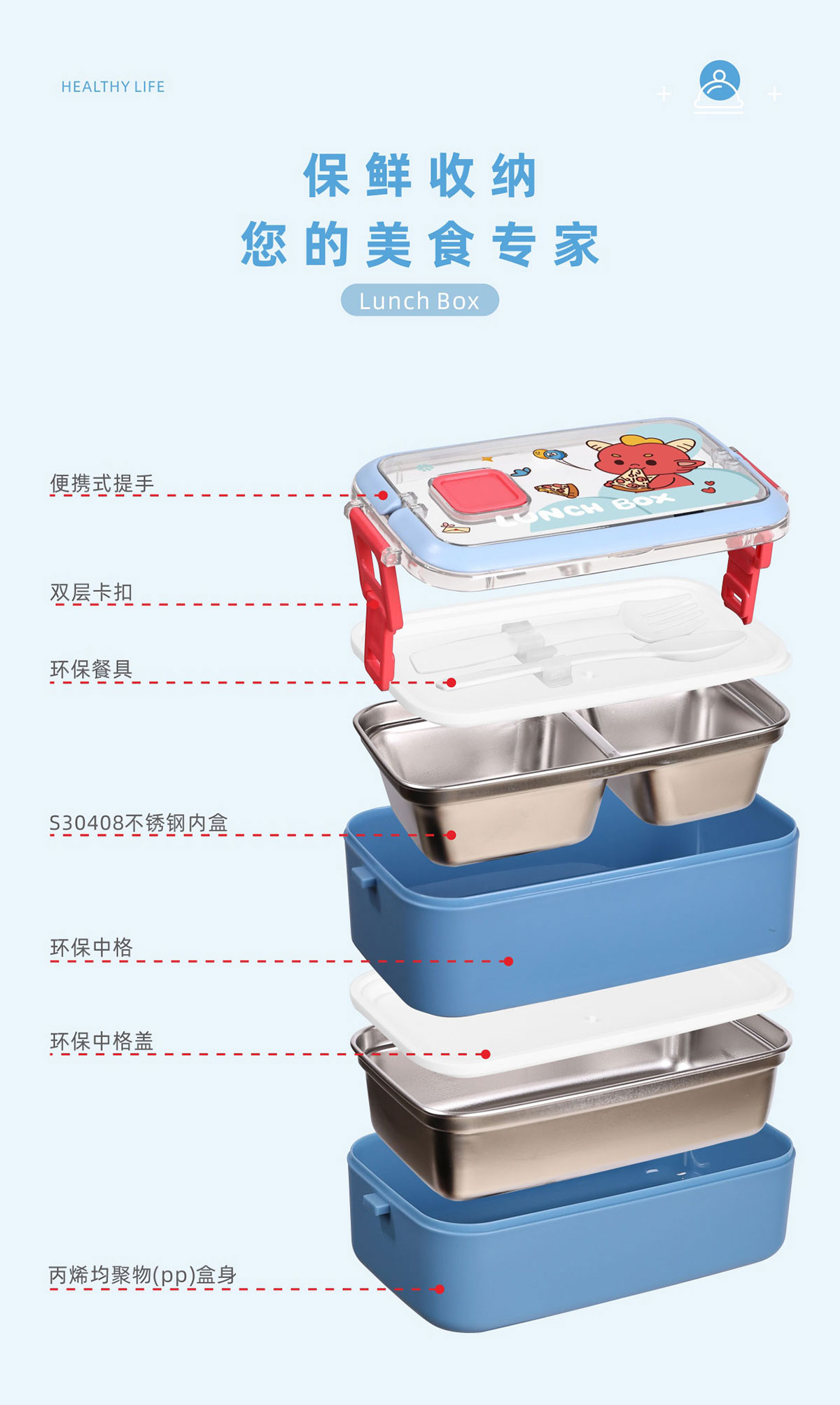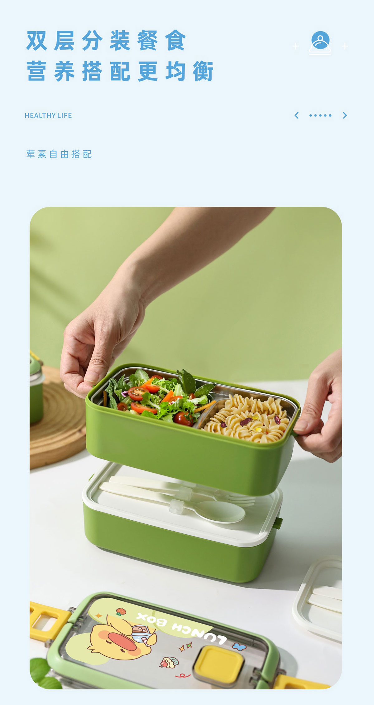 風(fēng)尚單層/雙層不銹鋼餐盒(帶餐具)