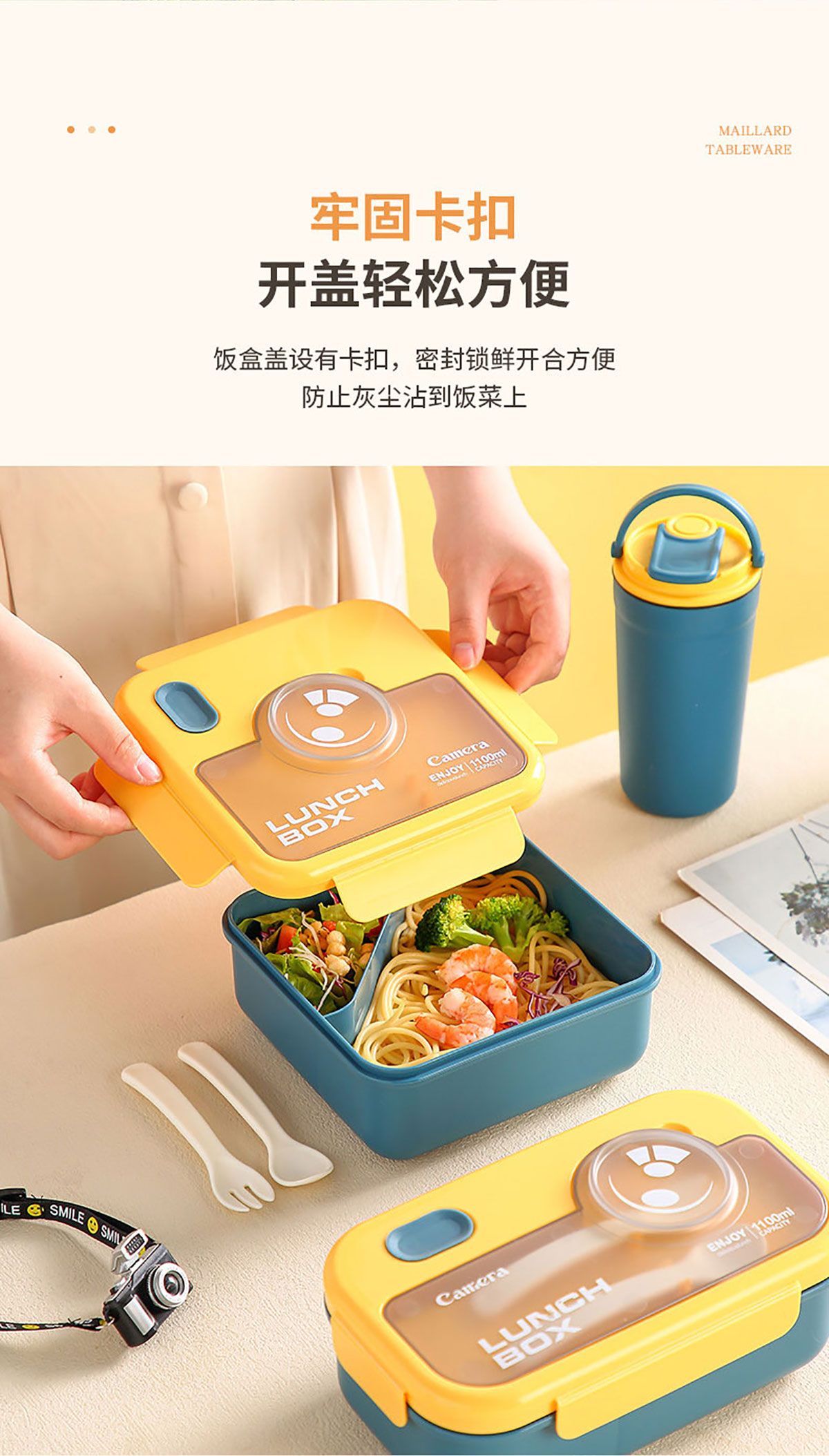 莫蘭迪長(zhǎng)方1100ml/正方1000ml相機(jī)飯盒(配叉+勺)